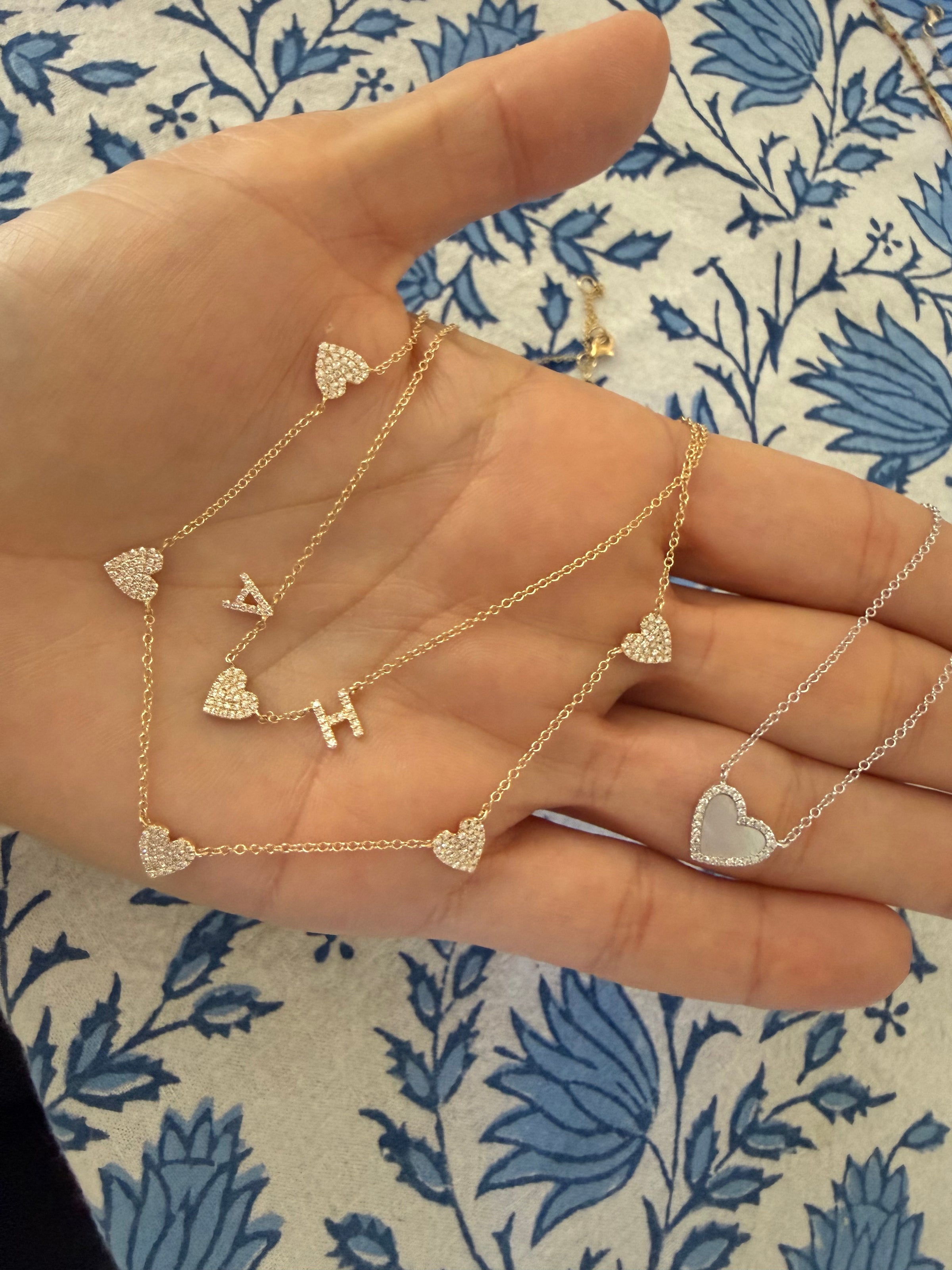 PAVE DIAMOND HEART STATION NECKLACE